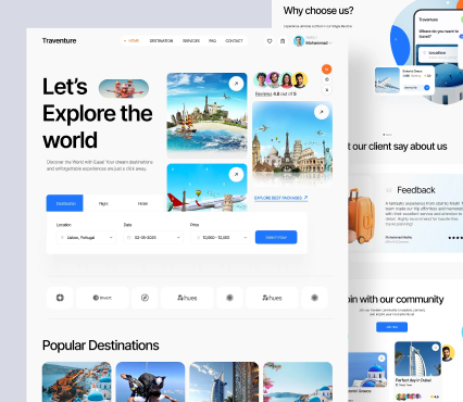 eLeoRex Technologies creates unique visual identity for travel websites that speaks the language of travel lovers. Our design team combines unique visuals, vibrant colors, and effective branding elements to create trust and excitement. Working with clients, this tailor-made approach promotes memorable, immersive experiences that connect with globetrotters and encourage them to discover more of the world.